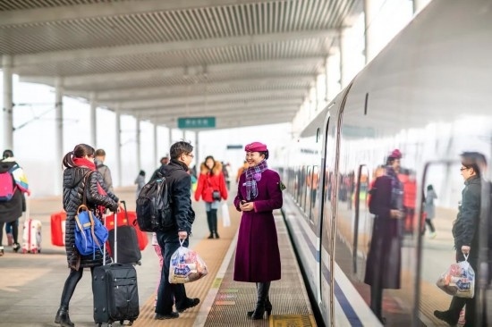 2018年春運,完成值乘任務(wù)的復(fù)興號列車長開心退乘。