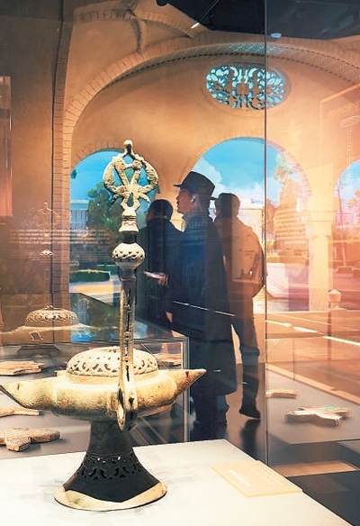 伊朗古稱波斯,是有著數(shù)千年歷史的文明古國(guó)。亞歐非多民族文化在此交匯融合,仿佛群星點(diǎn)亮的夜空,璀璨奪目。此次展覽分為“光明信仰與波斯生活”“交流融匯·波斯陶瓷記憶”“群星薈聚·伊朗金屬器藝術(shù)”“剔透耀彩·波斯玻璃器”“錦繡華彩·波斯錦與地毯”五部分,從多個(gè)角度向觀眾展示波斯文明之美及其與中華文明的交流互鑒。