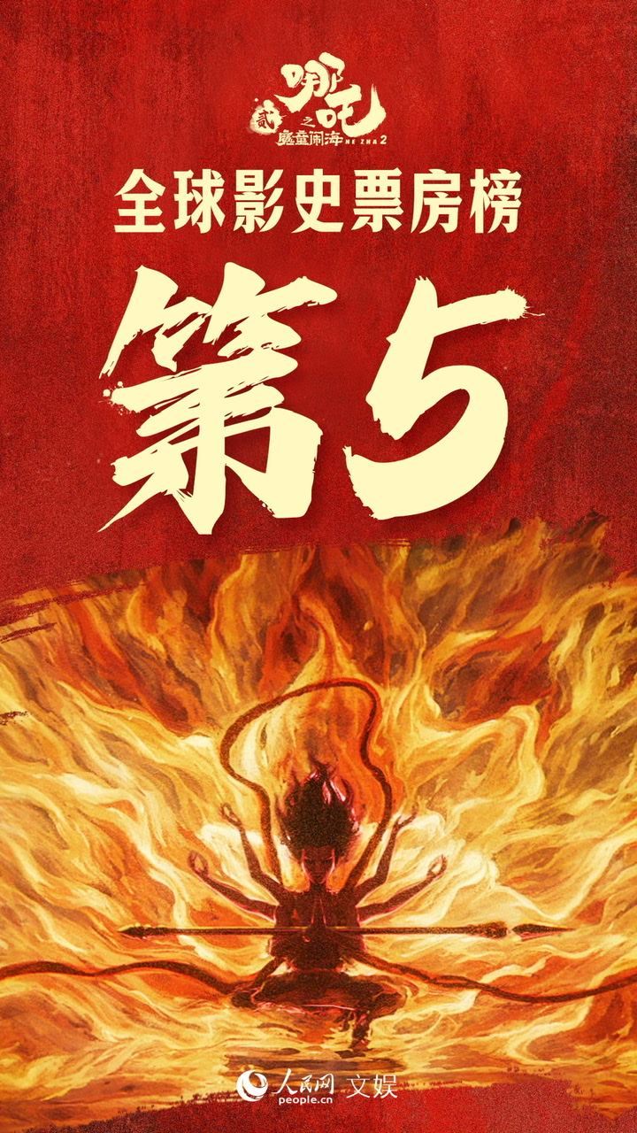 自上映以來,《哪吒之魔童鬧海》已連續(xù)創(chuàng)造多項(xiàng)紀(jì)錄,先后超越《獅子王》《侏羅紀(jì)世界》《頭腦特工隊(duì)2》《蜘蛛俠:英雄無歸》《復(fù)仇者聯(lián)盟3 :無限戰(zhàn)爭(zhēng)》票房成績,在全球影史票房榜上的排名不斷躍升。