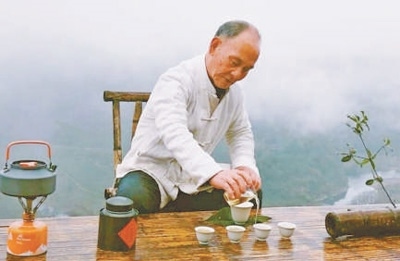 仔細看茶葉包裝上的字,竟都是他的書法——他不僅種茶、做茶,“寫茶”也是他的愛好?!皫r骨生活水,花香存高遠。久遠出陳韻,津潤顯甘醇?!彼脑娞N含對茶的深情與敬意,也有人生的豁達與樂觀。茶的品性和人的性情,融為一體。