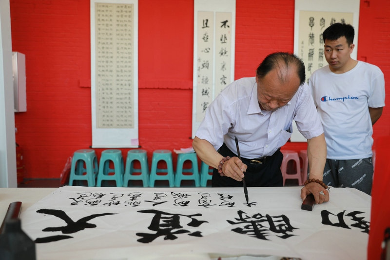 活動(dòng)現(xiàn)場(chǎng),書畫家們鋪開宣紙,揮灑愛心情懷。30余名書畫家和愛心人士在活動(dòng)現(xiàn)場(chǎng)揮毫潑墨、內(nèi)蘊(yùn)文質(zhì)精華,外彰形制逸美,以古典文詞展示"尚善"情操和"望賢"之心。"止于至善"、"家和業(yè)興,寧靜致遠(yuǎn)"、"構(gòu)建和諧社會(huì) 倡導(dǎo)助殘風(fēng)尚"……一幅幅充滿著關(guān)愛和正能量的藝術(shù)作品陸續(xù)被創(chuàng)作完成。
