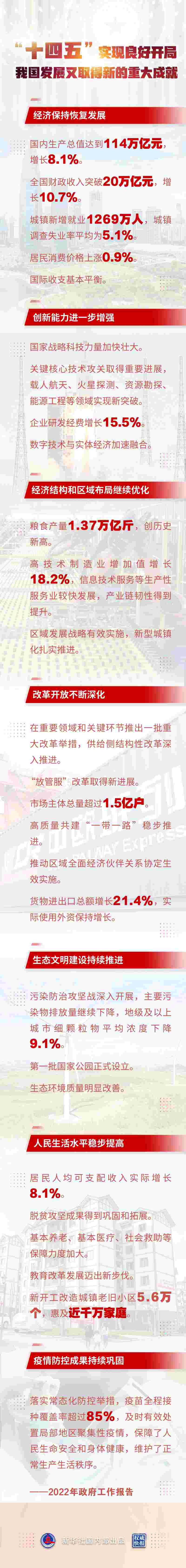 國務(wù)院總理李克強5日在政府工作報告中指出,過去一年是黨和國家歷史上具有里程碑意義的一年。以習(xí)近平同志為核心的黨中央團結(jié)帶領(lǐng)全黨全國各族人民,隆重慶祝中國共產(chǎn)黨成立一百周年,勝利召開黨的十九屆六中全會、制定黨的第三個歷史決議,如期打贏脫貧攻堅戰(zhàn),如期全面建成小康社會、實現(xiàn)第一個百年奮斗目標,開啟全面建設(shè)社會主義現(xiàn)代化國家、向第二個百年奮斗目標進軍新征程。一年來,面對復(fù)雜嚴峻的國內(nèi)外形勢和諸多風(fēng)險挑戰(zhàn),全國上下共同努力,統(tǒng)籌疫情防控和經(jīng)濟社會發(fā)展,全年主要目標任務(wù)較好完成,“十四五”實現(xiàn)良好開局,我國發(fā)展又取得新的重大成就。