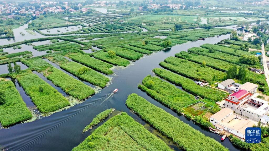 這是白洋淀風(fēng)光(2021年8月14日攝,無人機(jī)照片)。