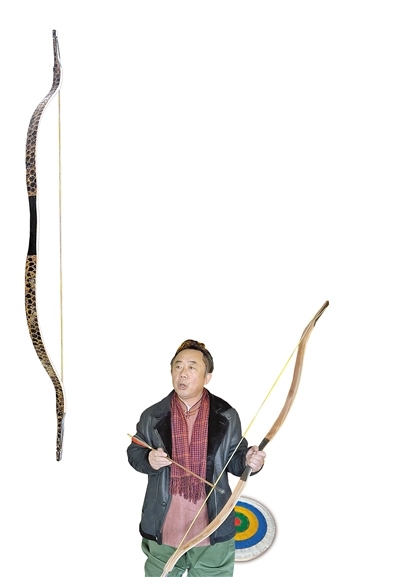 學(xué)物理出身的諾敏朝魯有著獨有的優(yōu)勢,他身兼木匠、鐵匠,自己改良制弓工具……經(jīng)過無數(shù)次的重復(fù)試驗,諾敏朝魯終于在2007年7月做出了他的第一張牛角弓,兩年后獲國家專利。