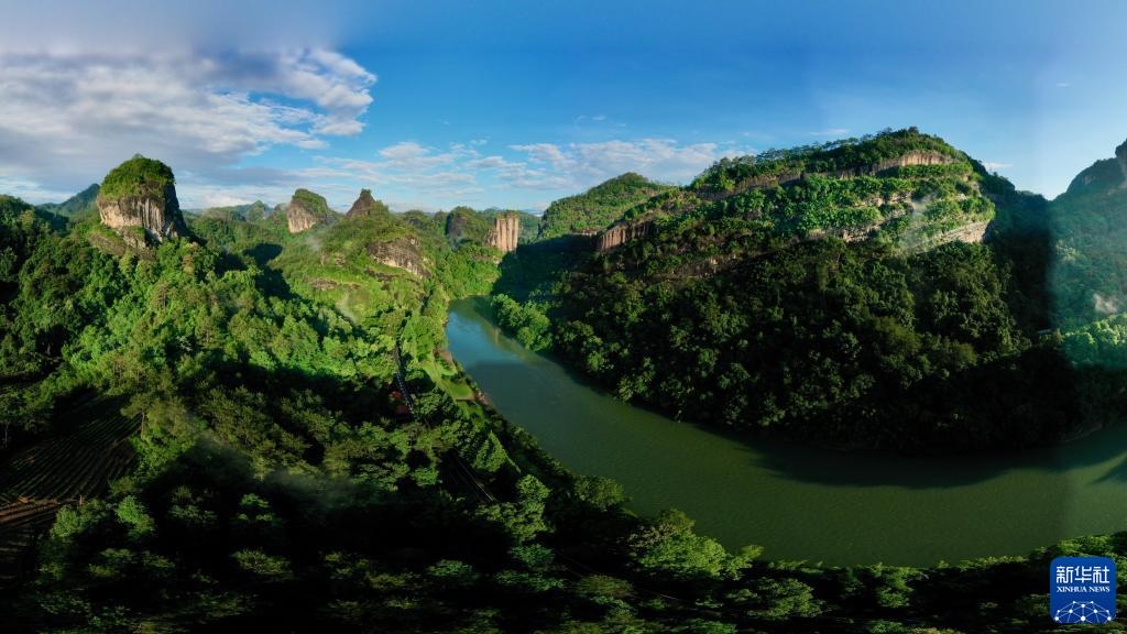 這是武夷山國家公園九曲溪兩岸景觀(6月6日攝,無人機(jī)照片)。新華社記者 姜克紅 攝