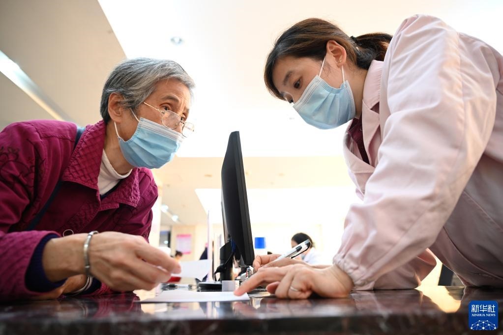 福建省三明市第一醫(yī)院醫(yī)保辦工作人員(右)向前來咨詢藥品報(bào)銷問題的居民講解相關(guān)政策(2020年11月18日攝)。新華社記者 姜克紅 攝