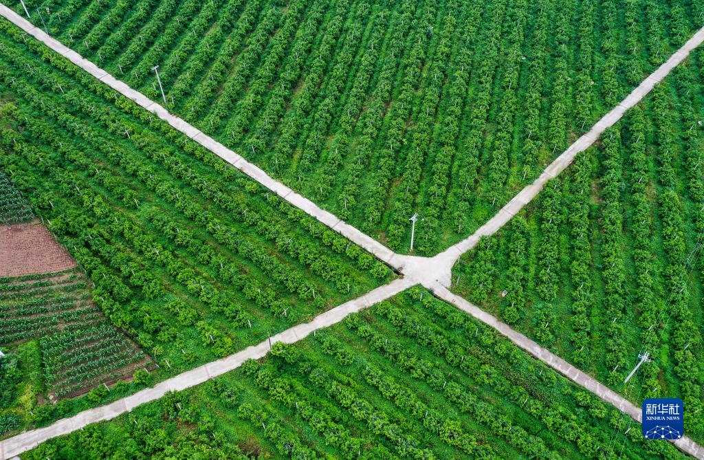 這是5月25日拍攝的重慶市忠縣新立鎮(zhèn)柑橘種植基地(無(wú)人機(jī)照片)。新華社記者 王全超 攝