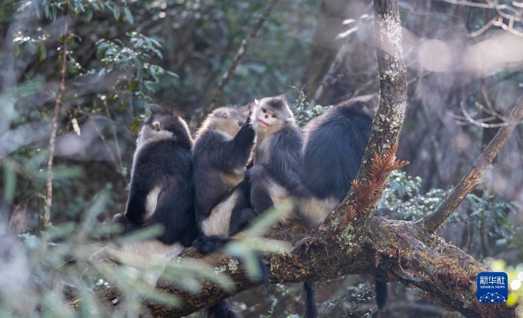 這是在云南白馬雪山國家級自然保護區(qū)內(nèi)拍攝的滇金絲猴(3月13日攝)。新華社記者 王冠森 攝