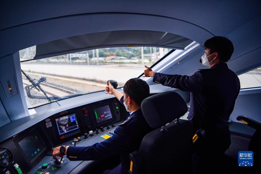 列車司機駕駛復(fù)興號列車行駛在中老鐵路上(6月1日攝)。新華社記者 江文耀 攝