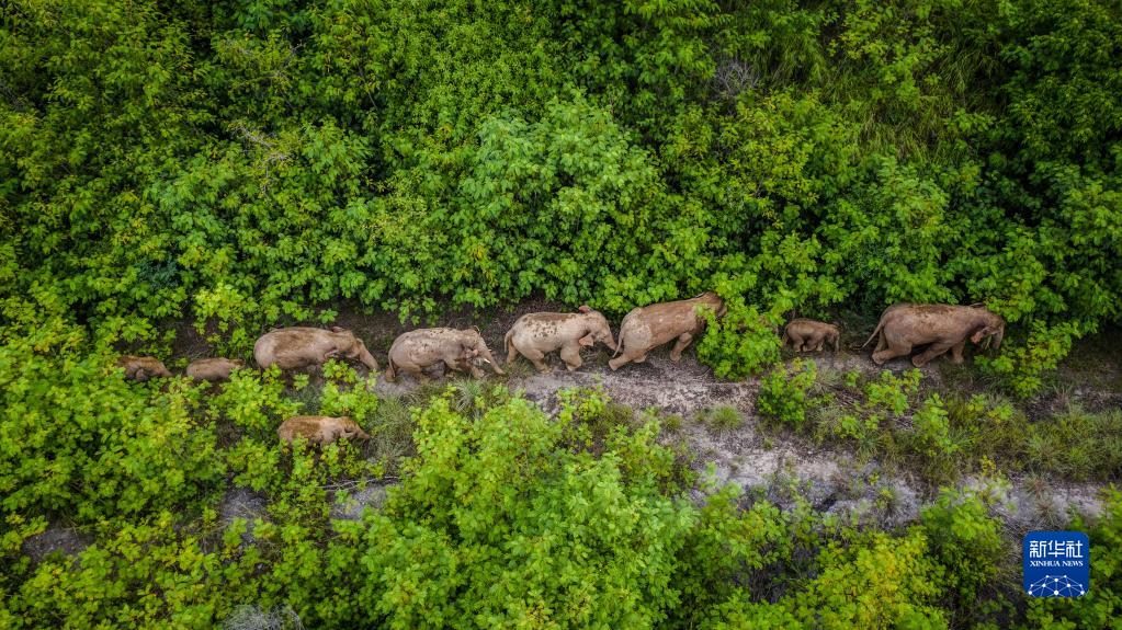 這是在云南省玉溪市元江縣境內(nèi)拍攝的象群(無人機照片,2021年8月9日攝)。新華社記者 胡超 攝