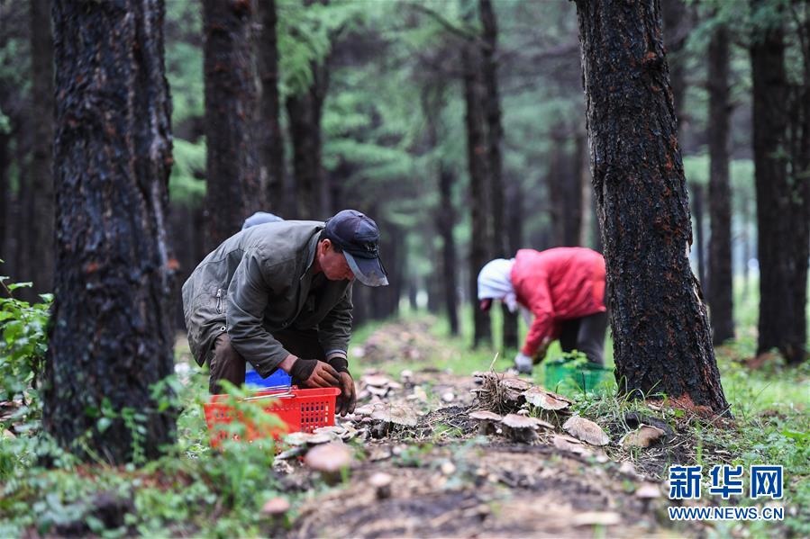 近日,內(nèi)蒙古克什克騰旗樺木溝林場(chǎng)的大球蓋菇長(zhǎng)勢(shì)喜人,工人們?cè)诿芰珠g忙著采摘。這是當(dāng)?shù)亓謭?chǎng)與青島農(nóng)業(yè)大學(xué)于2018年起開始合作的食用菌林下種植試驗(yàn)項(xiàng)目,目前這里的大球蓋菇畝產(chǎn)能達(dá)4000斤以上,還吸引了許多游客來體驗(yàn)林中蘑菇采摘。今年,該試驗(yàn)項(xiàng)目已經(jīng)小規(guī)模推廣到林場(chǎng)周邊鄉(xiāng)鎮(zhèn),林下種菌使老林區(qū)有了新活力,帶動(dòng)了林區(qū)居民增收。新華社記者 劉磊 攝