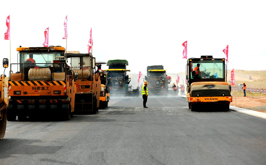 這個路段,也是由內(nèi)蒙古路橋集團第七工程處負責施工建設(shè),起點位于二連浩特市疏港公路與成吉思汗大街交叉處,終點位于錫林郭勒盟蘇尼特右旗與烏蘭察布市四子王旗交界處的艾勒格廟,路線全長約66.764公里。